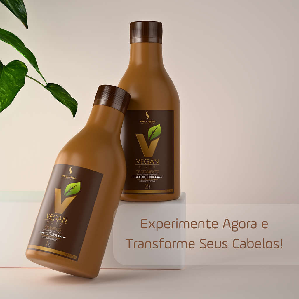 A Vegan Hair possui fórmula possui ácidos orgânicos e blend de vitaminas que promove o alinhamento dos fios, reduz o volume e frizz, além de muito brilho e tratamento aos cabelos.